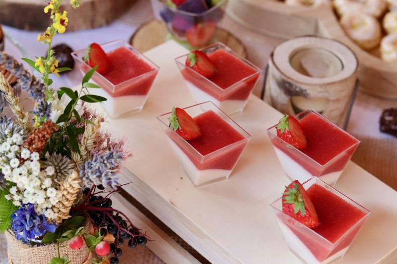 🍓 Ovocnou panna cottu - jemný vrstvený smetanovo-ovocný dezert s ovocným pyré (na výběr ze tří druhů)